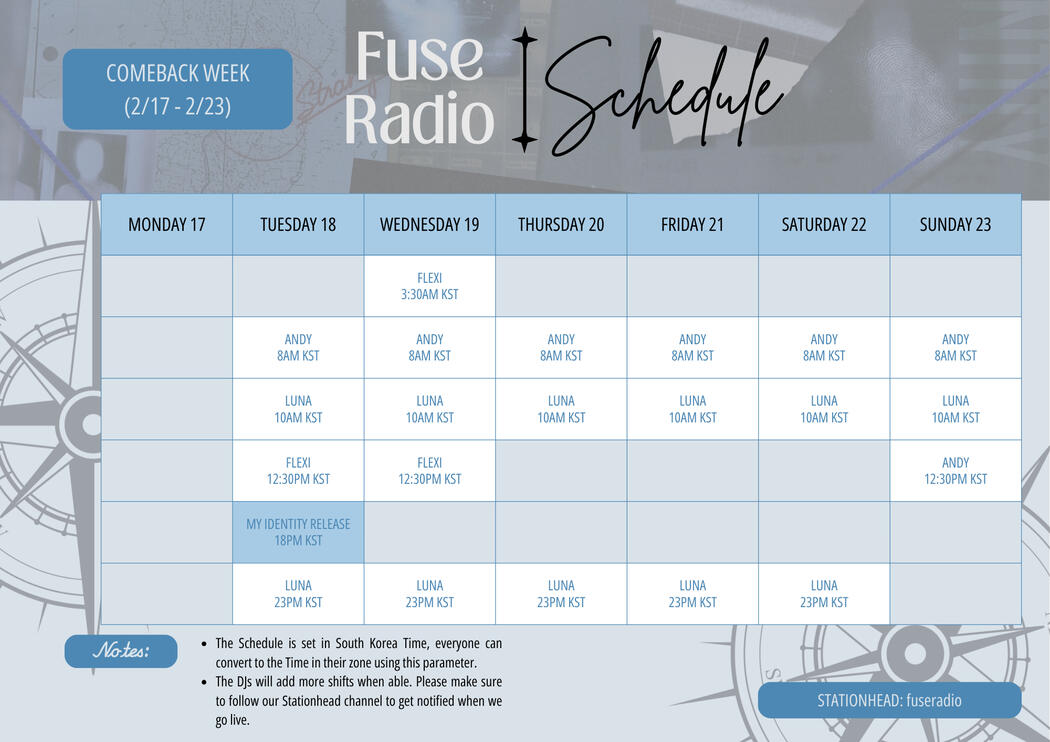 This is the schedule for the radio activities during the COMEBACK WEEK (02/17-02/23)